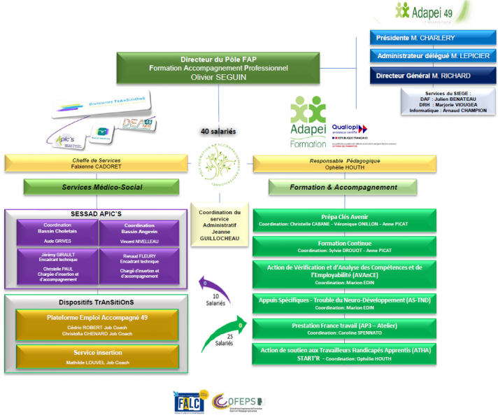 Le Pôle Formation et Accompagnement Professionnel (FAP) de l’Adapei 49 est composé :